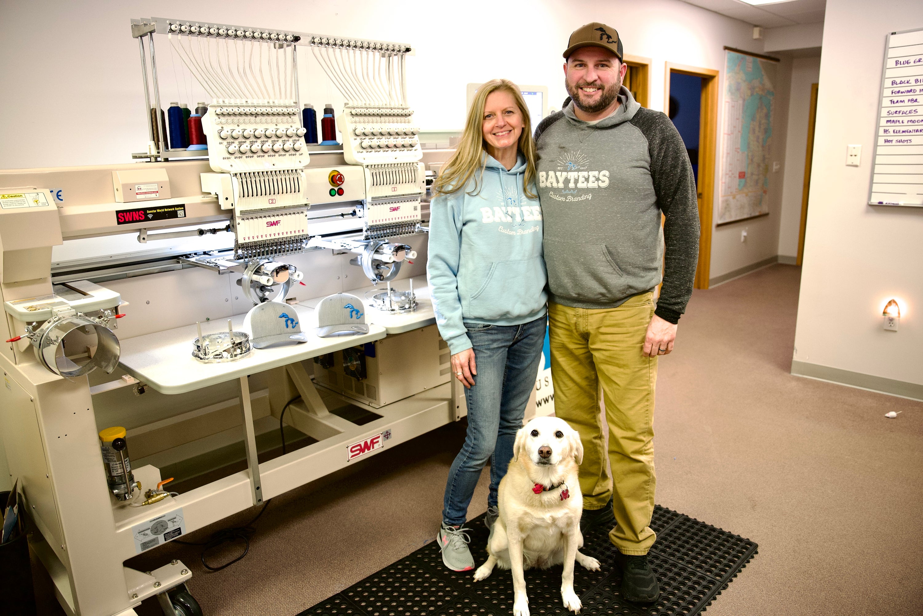 Growing up on the shores of Little Traverse Bay, owners Joe & Julie Beattie love to share their creativity by producing one of kind embellishments for individuals and companies alike. With over 15 years experience in the apparel industry, they started Baytees in a spare bedroom in their home in Petoskey Michigan. Now moved into a production/work facility, Baytess can produce high quality Screen Printing, Embroidery, Custom Vinyl lettering, and high production CO2 Laser Engraving. With attention to detail, Baytees takes Great pride in producing the highest quality products with the most attention to customer service and relationships. “Relationships are the basis of our business, our customers become our family”.